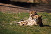 Um so erfreulicher war es zunächst, dass es den Anschein hatte, dass die Gepardin den einzig überlebenden Kater versorgte. Das ist in freier Wildbahn häufig nicht der Fall. Da es zu viele Reccourcen bindet, werden einzelne Tiere von den Müttern oft einfach zurück gelassen.